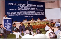The Hon'ble Chief Minister of Delhi, Smt. Sheila Dikshit inaugurated and launched welfare activities of the Board, a mobile welfare van and the website at a function in Vigyan Bhawan on 20/08/2002. The van has added wings to the efforts of the Board by reaching the workers at their doors. The website - www.dlwb.delhigovt.nic.in - has facilitated access to the Board's welfare activities and also to the progress made by it. It is clear from the vast number of visits to the site on a regular basis.